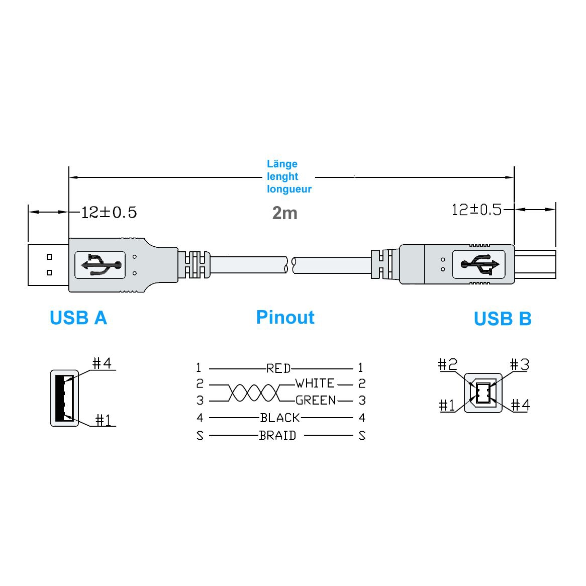 USB 2.0 cables AB