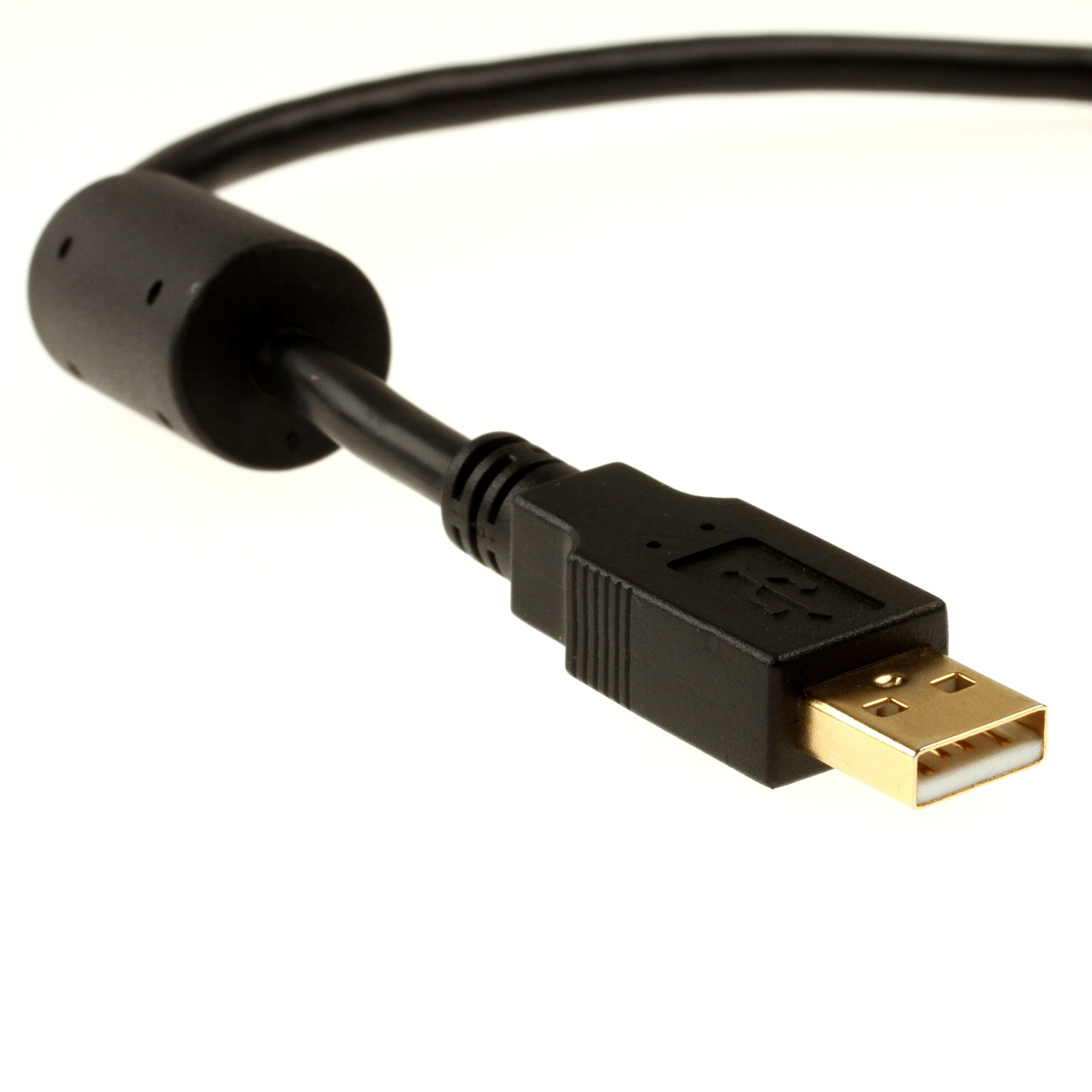 USB cable 3m, USB 2.0, very high quallity for INDUSTRIAL APPLICATIONS: 2x ferrite core, 26AWG/1P 20AWG/2C, double shield foil + braid (85% coverage), 30 µm gold plated plugs, USB-A male to USB-B male, black