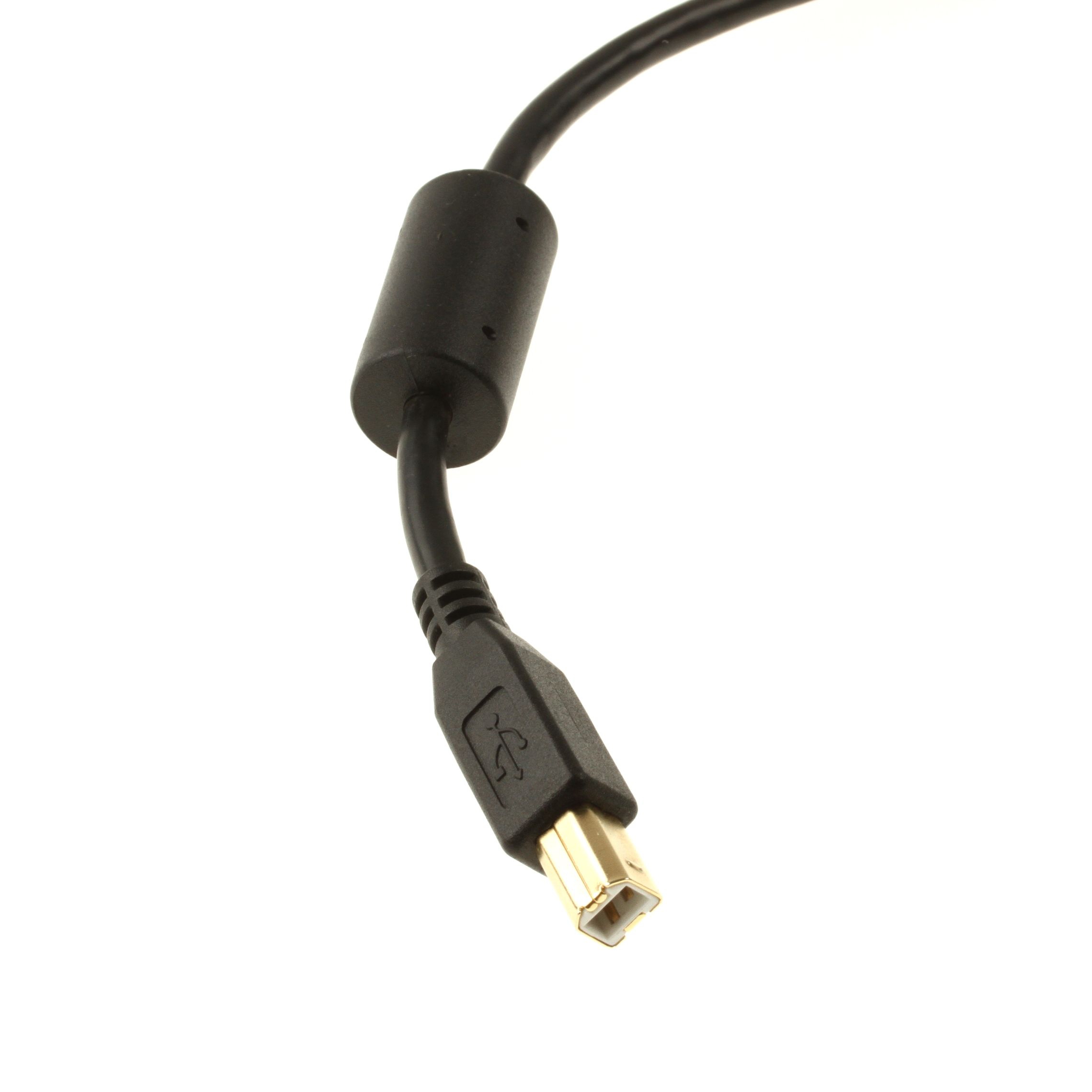 USB cable 50cm, USB 2.0, very high quallity for INDUSTRIAL APPLICATIONS: 2x ferrite core, 26AWG/1P 20AWG/2C, double shield foil + braid (85% coverage), 30 µm gold plated plugs, USB-A male to USB-B male, black