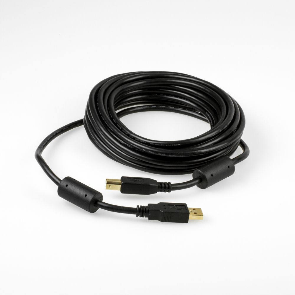 USB cable 7.5m, USB 2.0, very high quallity for INDUSTRIAL APPLICATIONS: 2x ferrite core, 26AWG/1P 20AWG/2C, double shield foil + braid (85% coverage), 30 µm gold plated plugs, USB-A male to USB-B male, black