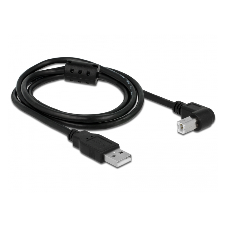 USB 2.0 cable with B plug 90° ANGLED DOWN with ferrite core 1m
