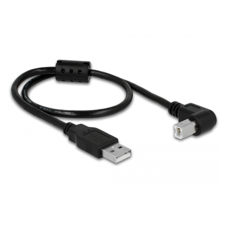 USB 2.0 cable with B plug 90° ANGLED DOWN with ferrite core 50cm