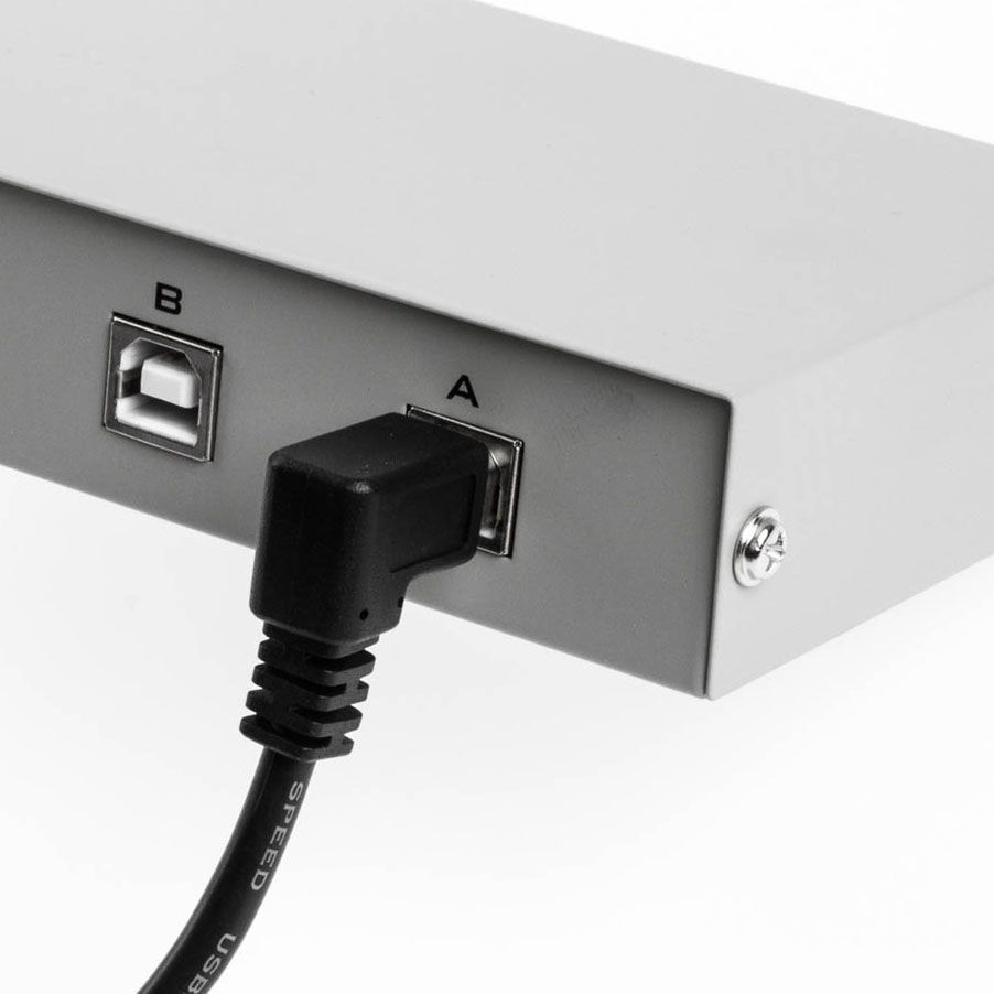- USB 2.0 cable A-to-B with 90° B angled plug