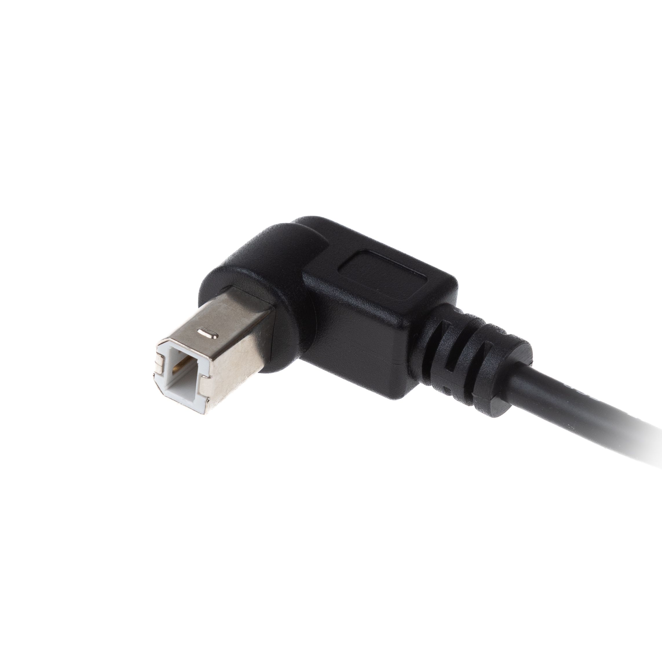 - USB 2.0 cable A-to-B with 90° B angled plug
