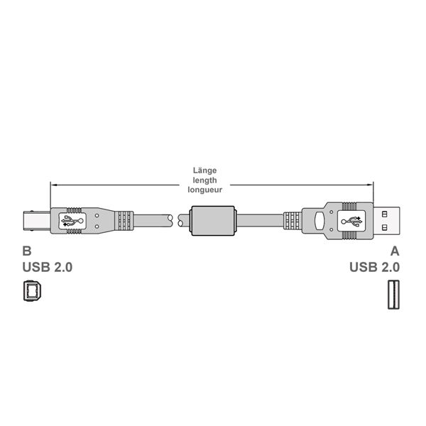 - USB 2.0 plug type B (to peripheral device/downstream)