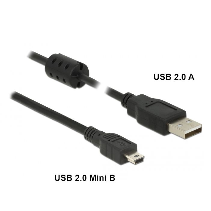 USB 2.0 cable with ferrite core, plug A to Mini B, 70cm