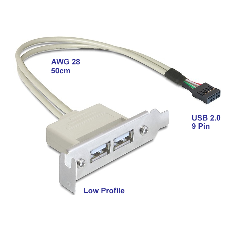 USB 2.0 slot adapter LOW PROFILE, 50cm