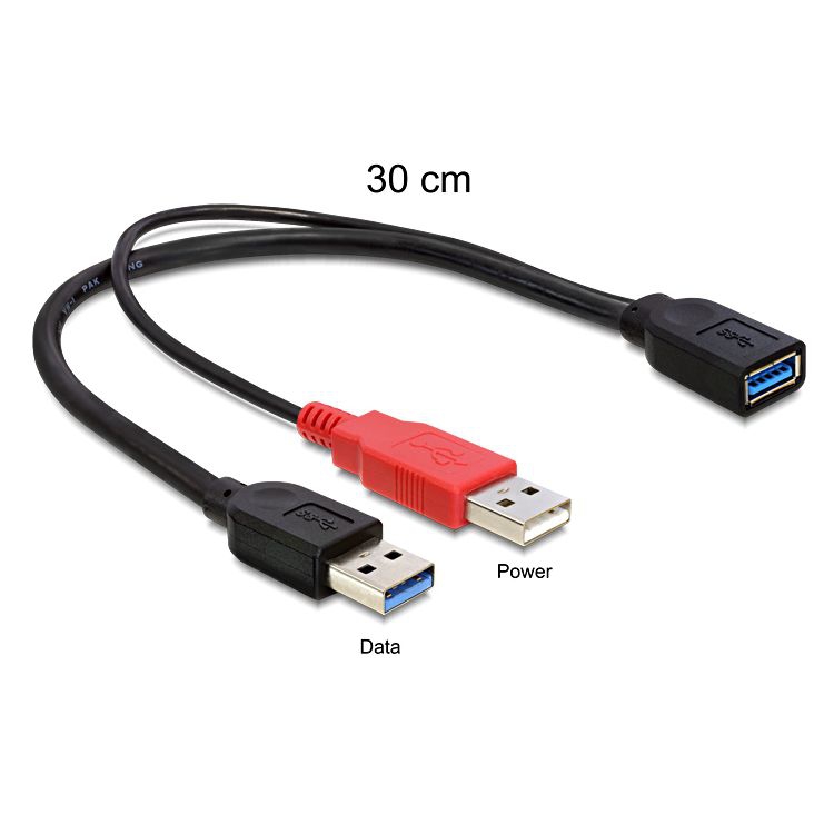 - Connector: USB 3.0-A female > USB 3.0-A male (data + power) + USB 2.0-A male (power)
