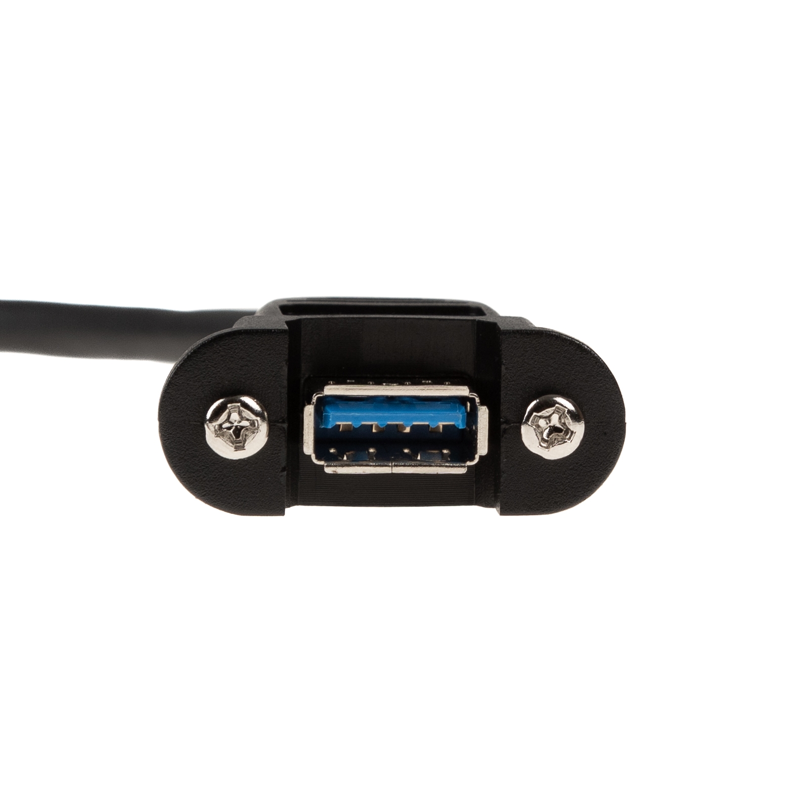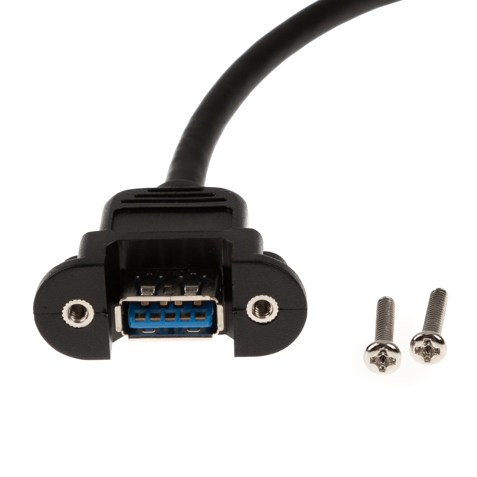 - Short USB 3.0 panel mounting cable with screw-on A socket