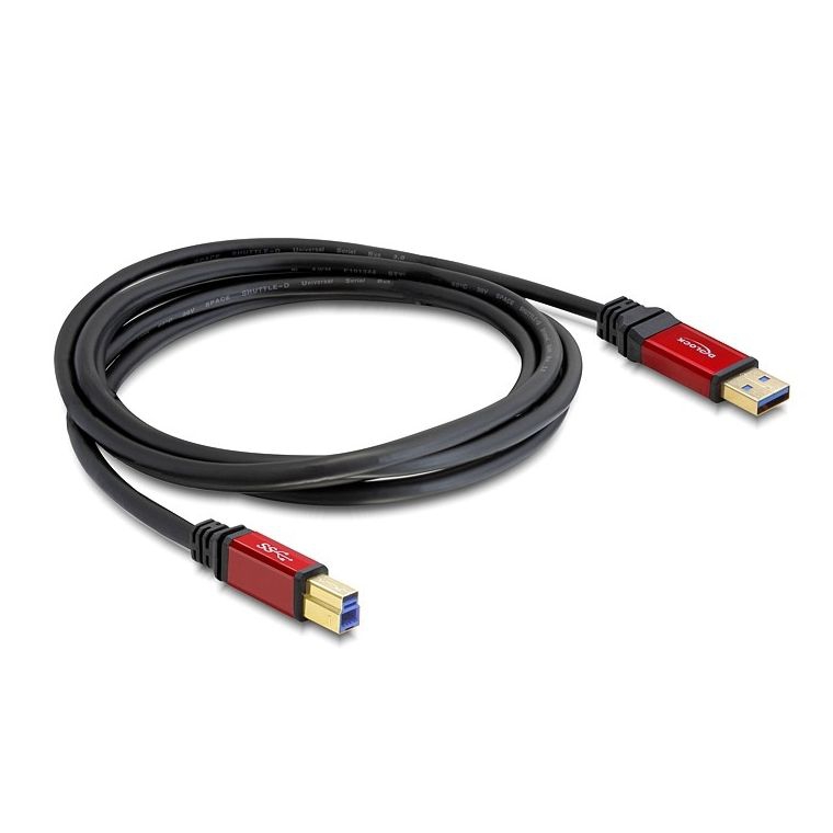 USB 3.0 cable with metal plugs, 2m, PREMIUM quality: AWG24/28, double shielded, gold plated plugs, Super Speed Mode (max. 5Gbps), USB3 A plug male to USB3 B plug male, colour: black