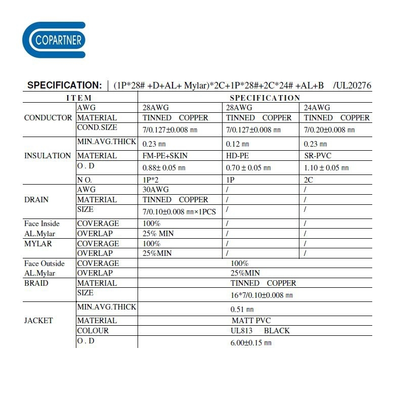 USB 3.0 cable material, roll with 100m, Premium Quality, UL, Copartner, black