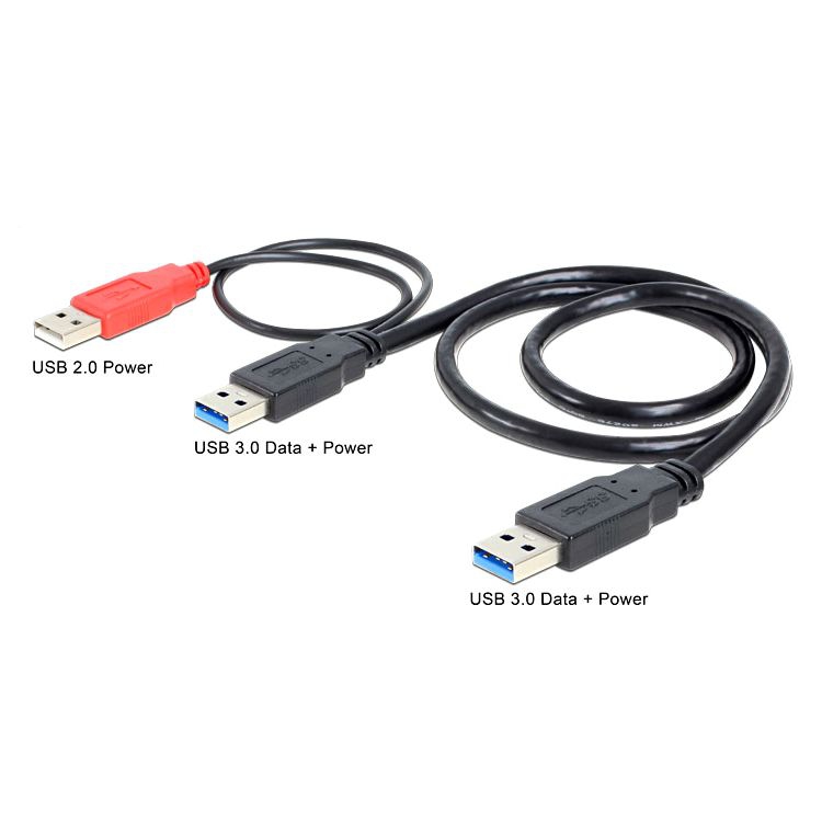 USB 3.0 dual power cable: 2x A male to 1x A male 50cm