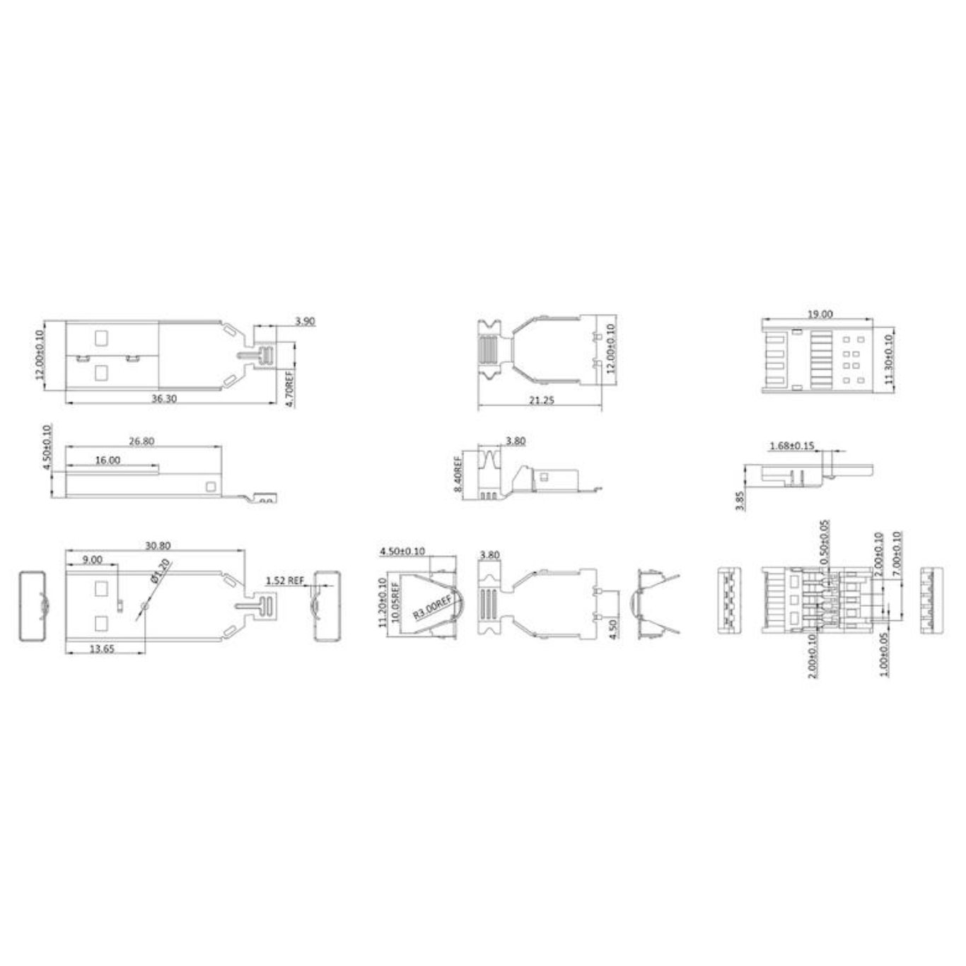 USB 3.0 plug type A, solder type, compatible SuperSpeed USB 3.0, RoHS compliant (without hood)
