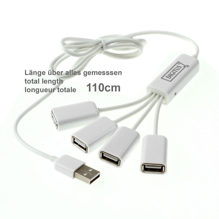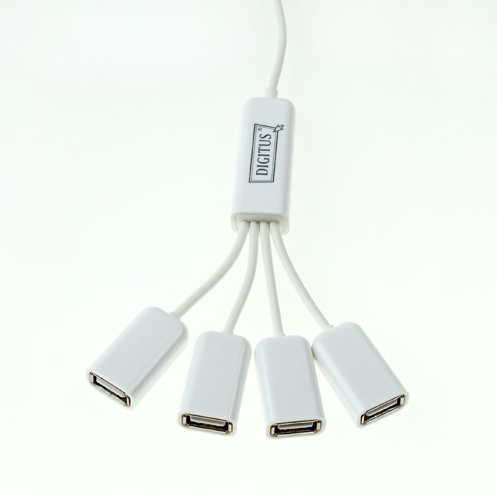 USB-HUB cable solution, 4 ports, USB 2.0 works bus bowered (without power supply), USB 2.0 FE1.1 chipset of Terminus Technology Inc., white