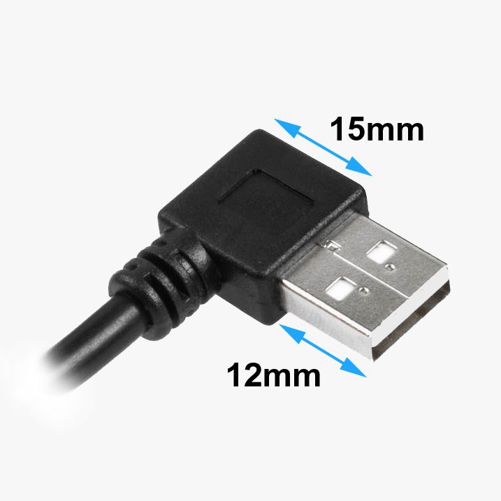 - connector 2: USB 2.0 type A male angled 90° LEFT space-saving solution