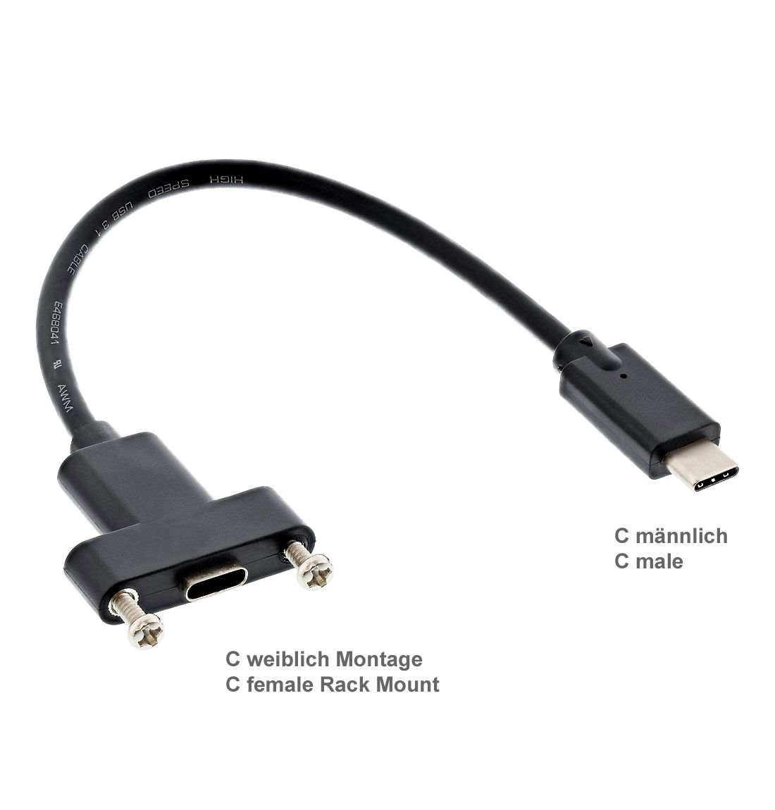 USB Type-C™ rack mount cable, female (with screws) to male, 5Gbps, 20cm, , USB 3.2 Gen.2