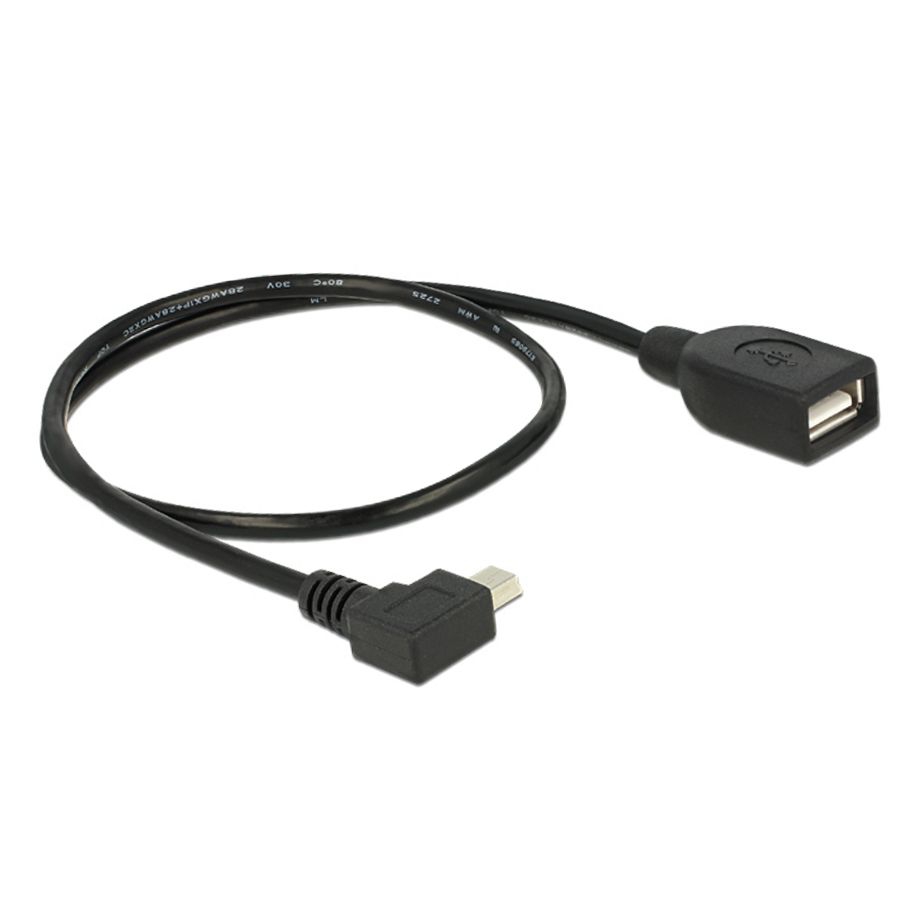 USB adapter Mini B cable 90° angled RIGHT to USB A female 50cm