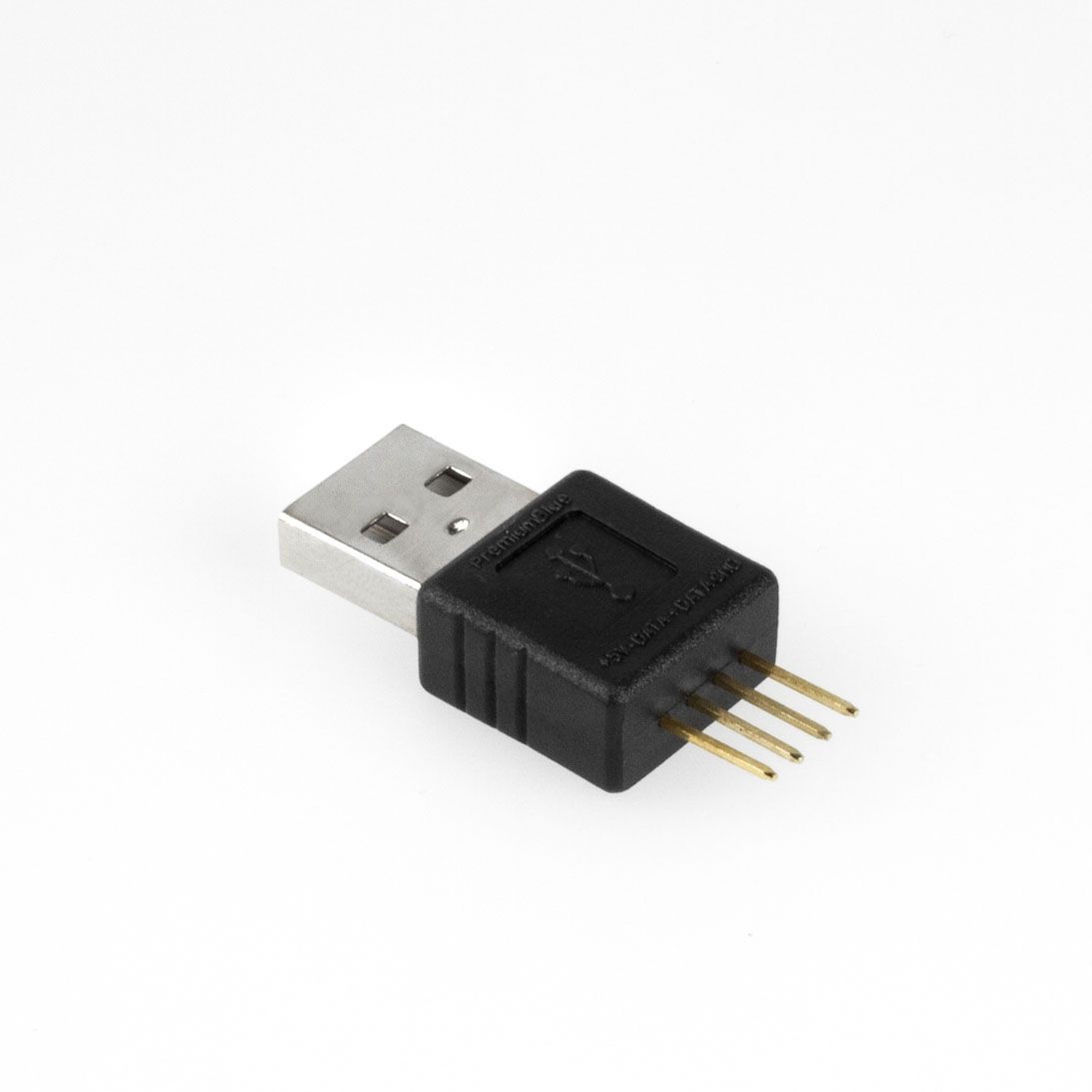 USB adapter internal/external, type: USB A plug (male) to 4 pins (+5 VDC, data+, data-, ground), to connect an internal USB cable with an external USB connector type A