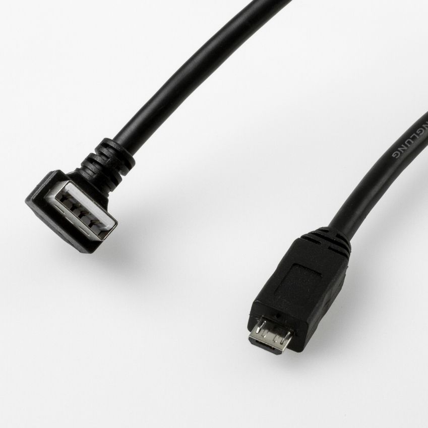 Micro USB cable with angled plug A, 1m, PREMIUM quality: double shielded, AWG28/1P AWG24/2C, USB 2.0, USB-A 90° angled to Micro-B straight, black