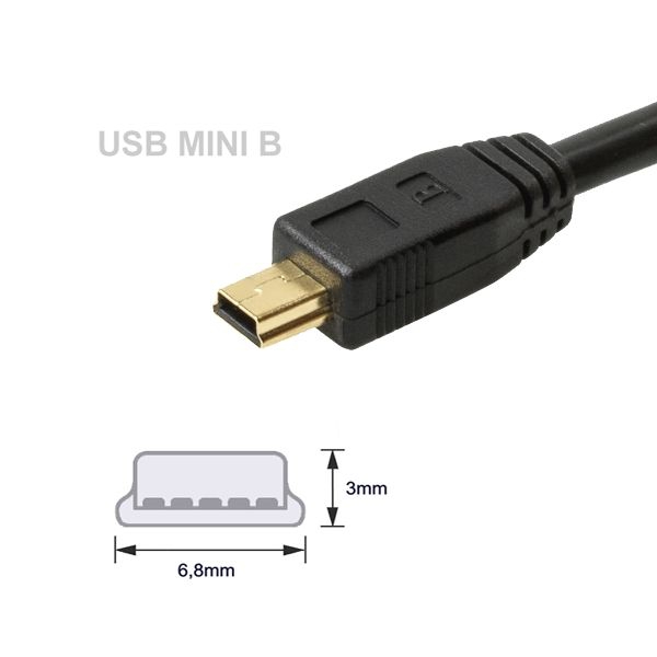 USB cable A to Mini B 5pin with 2 FERRITE CORES 1m