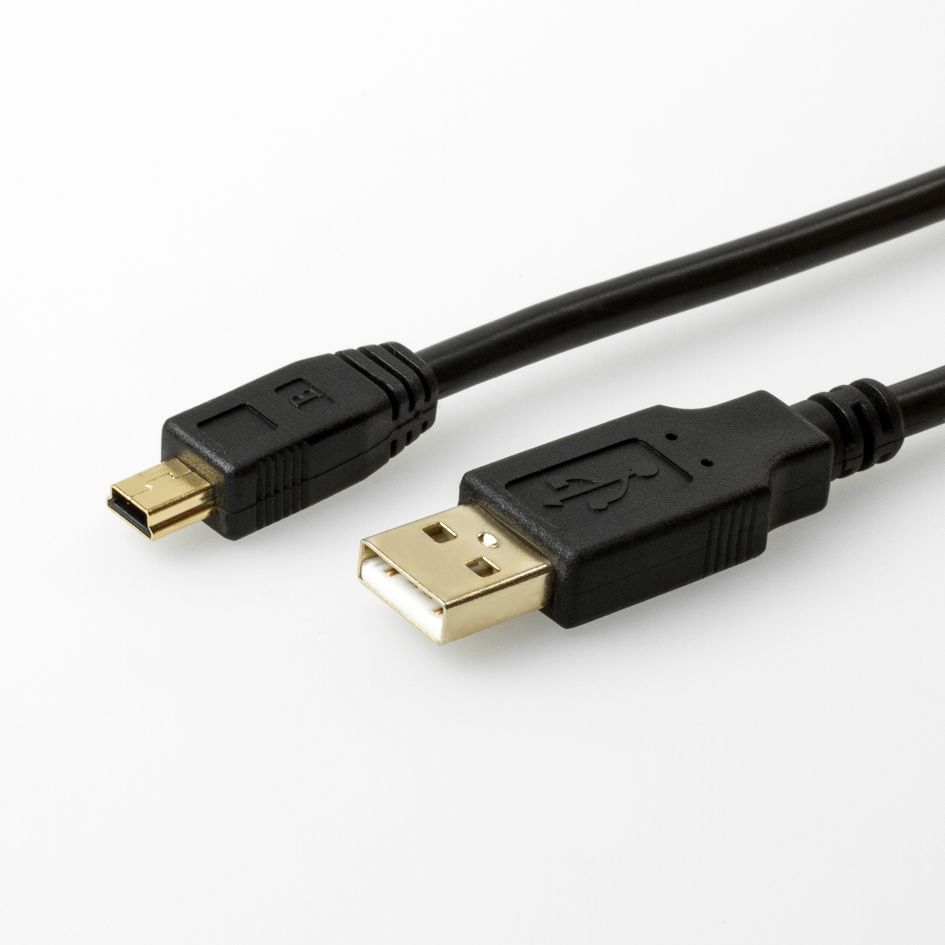 USB cable MINI B with 2 ferrite cores, 1m, USB A male to USB mini B male (5-pin), high quality, gold plated plugs, colour: black