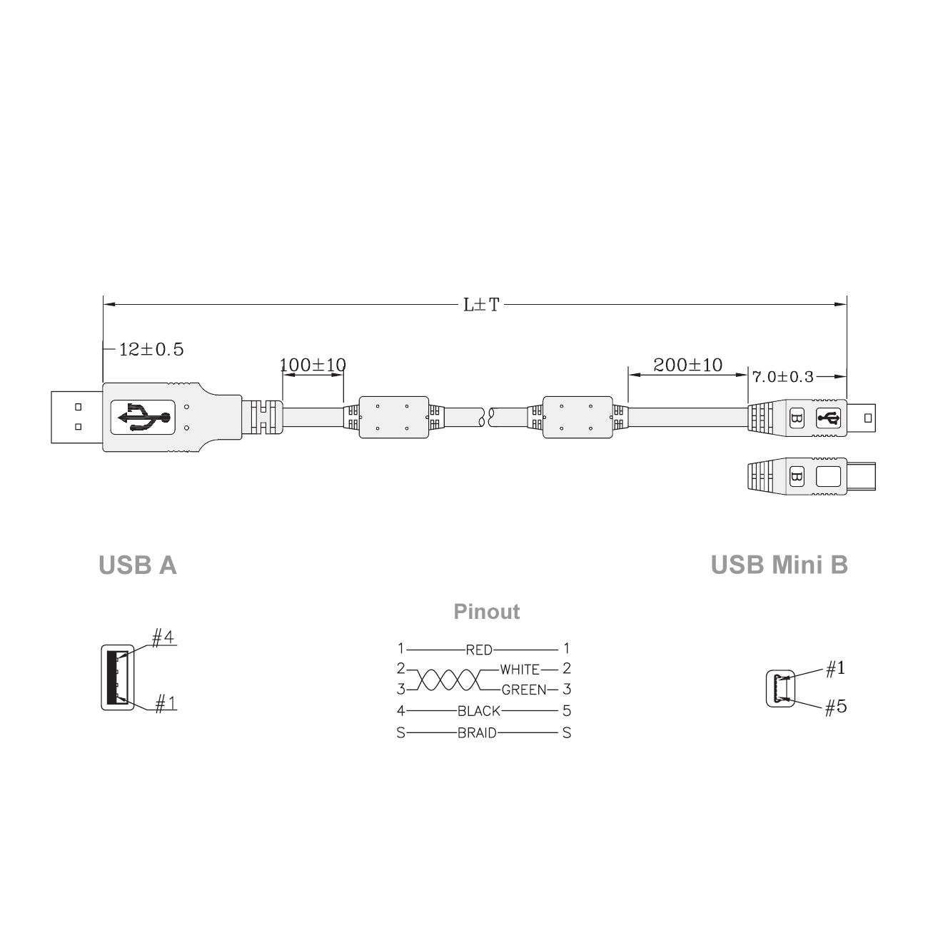 USB cable A to Mini B 5pin with 2 FERRITE CORES 2m