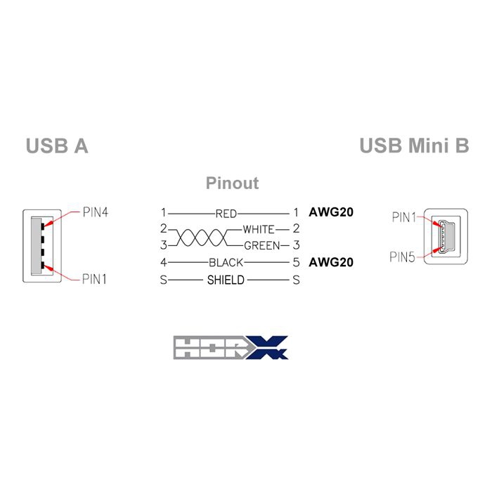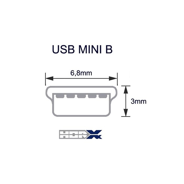 - small USB 2.0 Mini B plug male, 5 pins (downstream/to USB device)