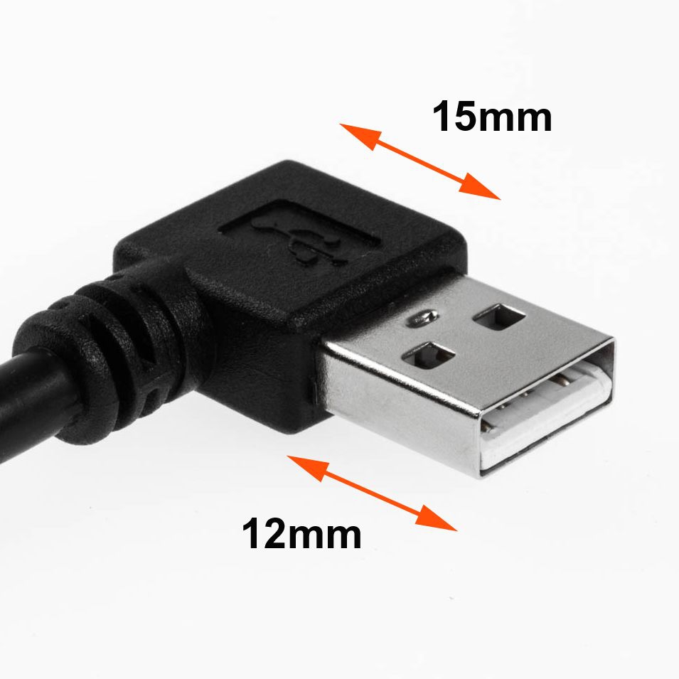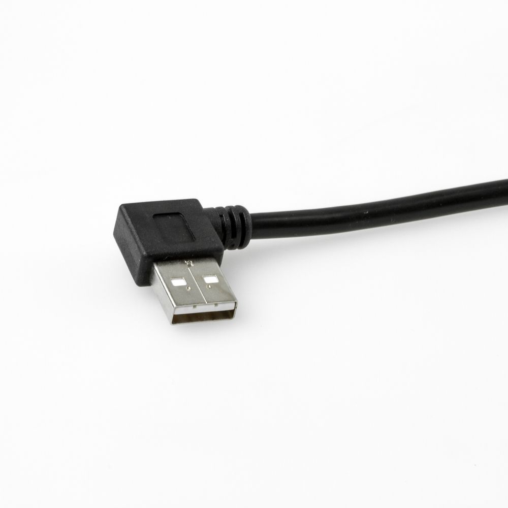 Mini USB cable: plug USB A 90° angled RIGHT to USB Mini B plug straight (5 pins), 50cm, black