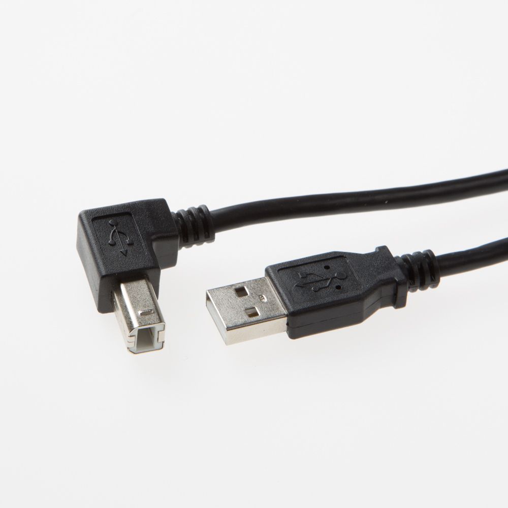 Angled USB cable, B plug angled (down) to A plug straight, 2m, for USB 1.1 and USB 2.0, high quality, colour: black, e.g. for Siemens Optiset, Optipoint TAPI/CTI Link, Octophon F20 F30 F40