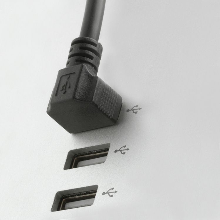 Angled USB cable, A plug 90° angled (UP) to B plug straight, 5m, for USB 2.0 and USB 1.1, high quality: double shielded, AWG28/1P AWG24/2C, colour: black