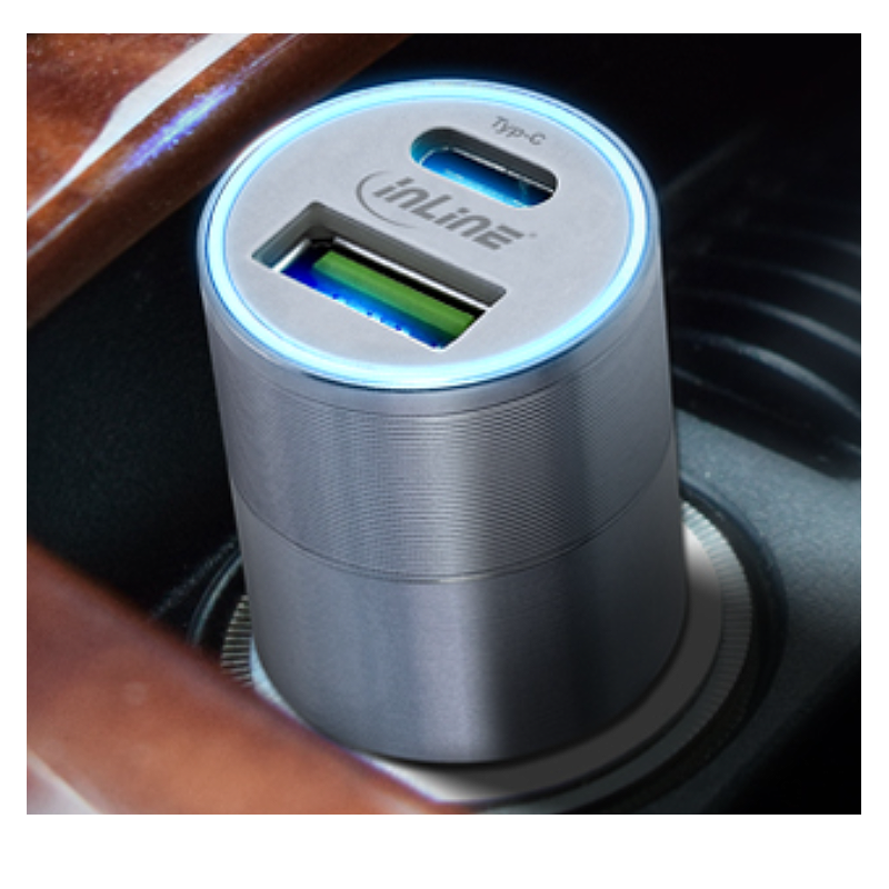USB car power adapter Quick Charge 5V DC/3A with USB-A + USB Type-C