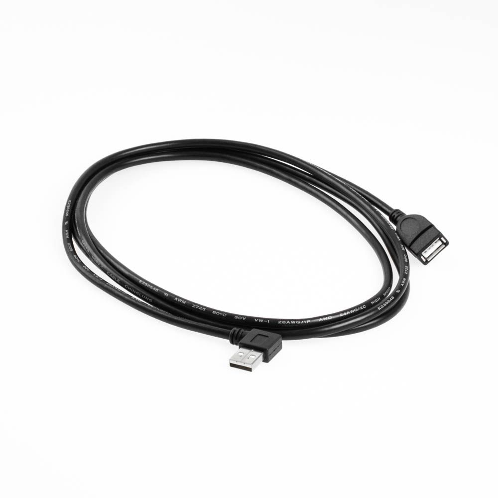 Angled USB extension cable, 2m, plug A angled 90° LEFT to connector A female, colour: black