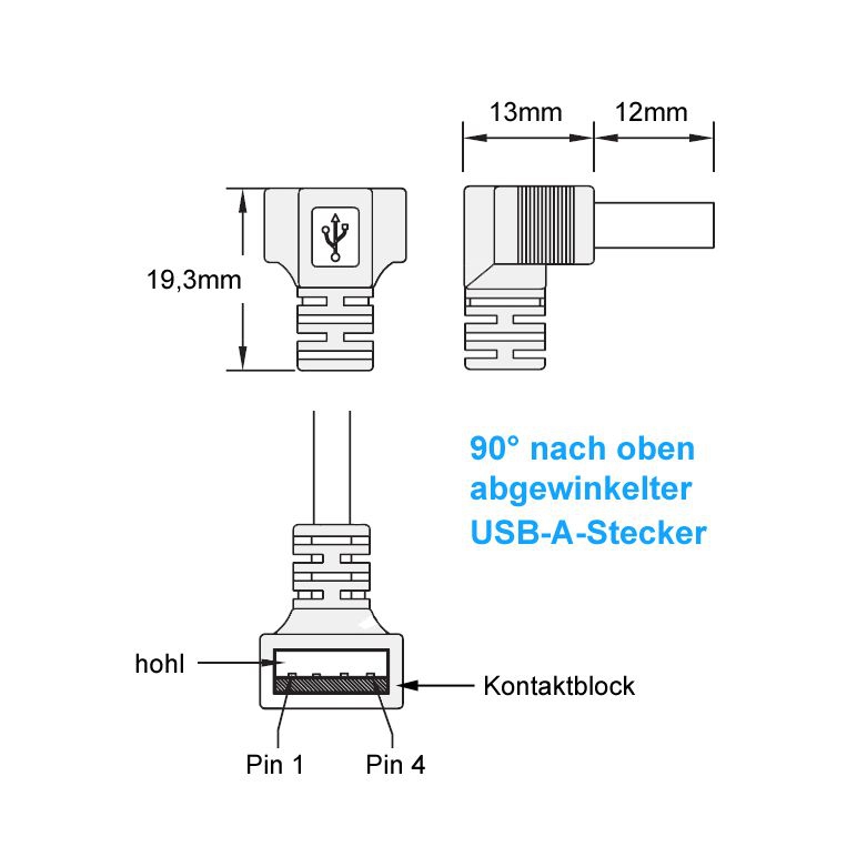 - USB 2.0 cables with angled plugs