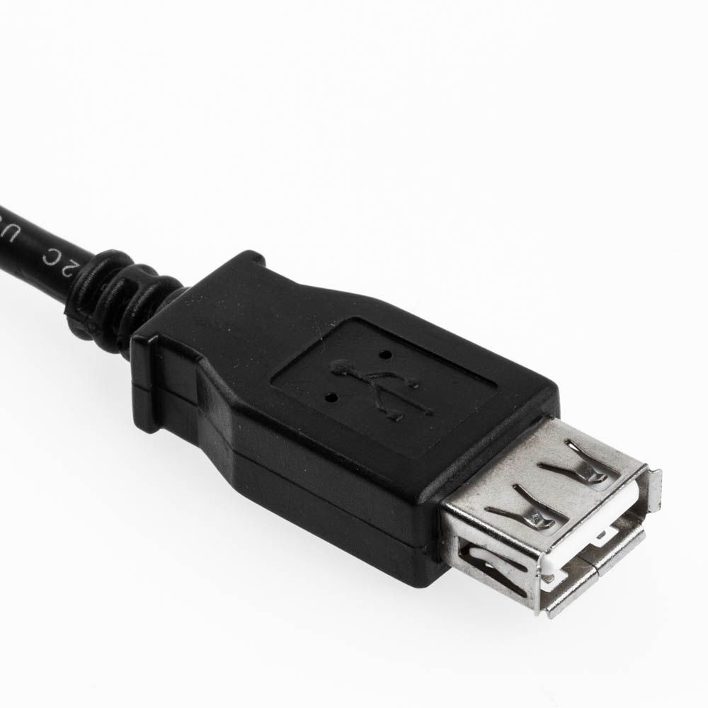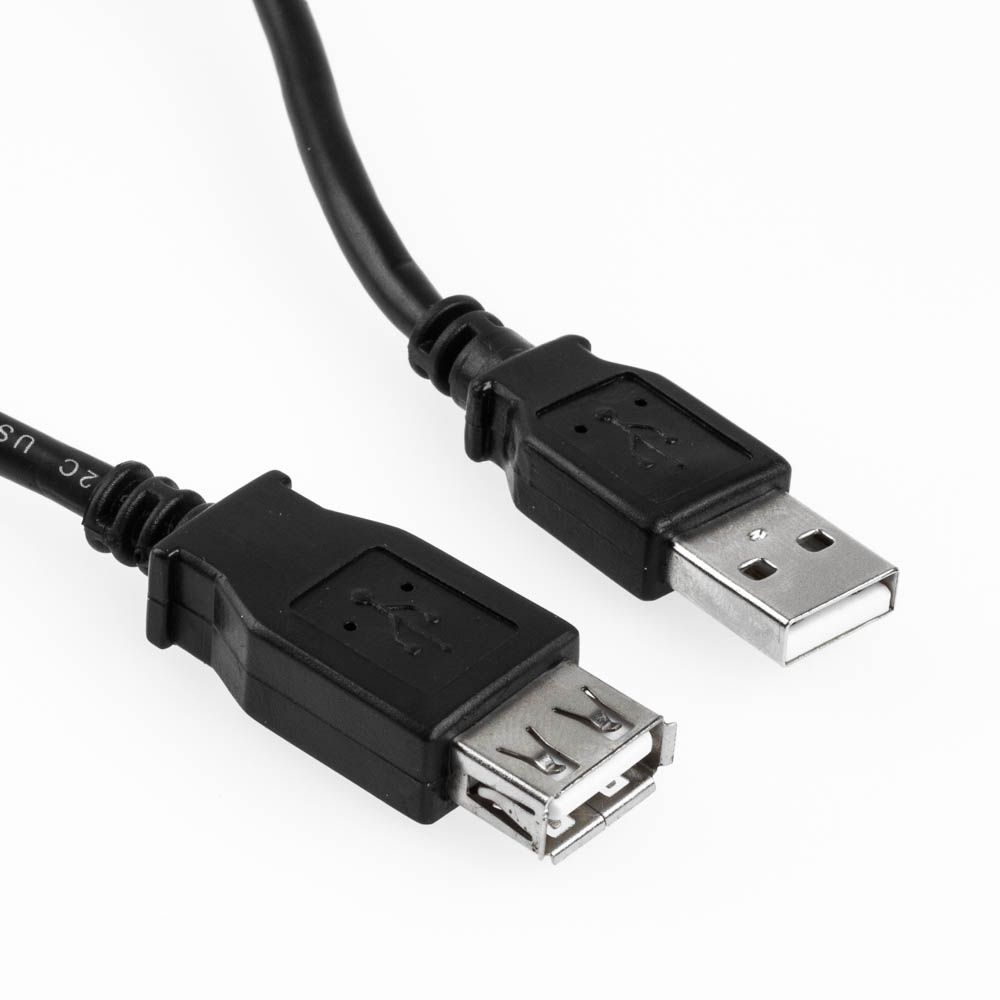 USB extension cable, very short: 30cm, USB 2.0 high speed: 28AWG/1P + 24AWG/2C, max. 480 Mbps, plug USB A male to USB A female, colour: black
