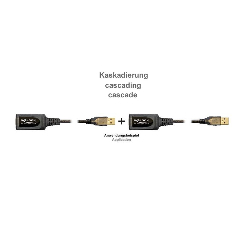 20m active USB 2.0 extension / USB 2.0 repeater cable: USB A plug male to USB A female, with integrated amplifier module (booster) in the middle of the cable, with chip set FE 1.1 (Windows 7 + VISTA certified) from Terminus-Technology Inc.