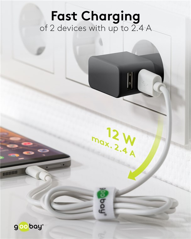 USB power supply with 2x USB A port female 5V 2400mA black
