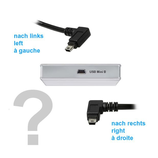USB spiral cable Mini B 90° angled LEFT to USB A female 28-55cm (OTG)