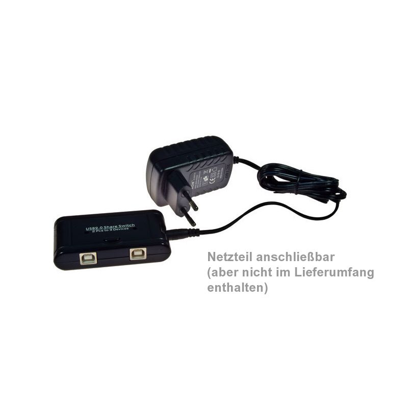 USB2 switching HUB 2:3 (2 PCs share 3 USB 2.0 devices), 2 USB cables included, switch with push button, without power supply