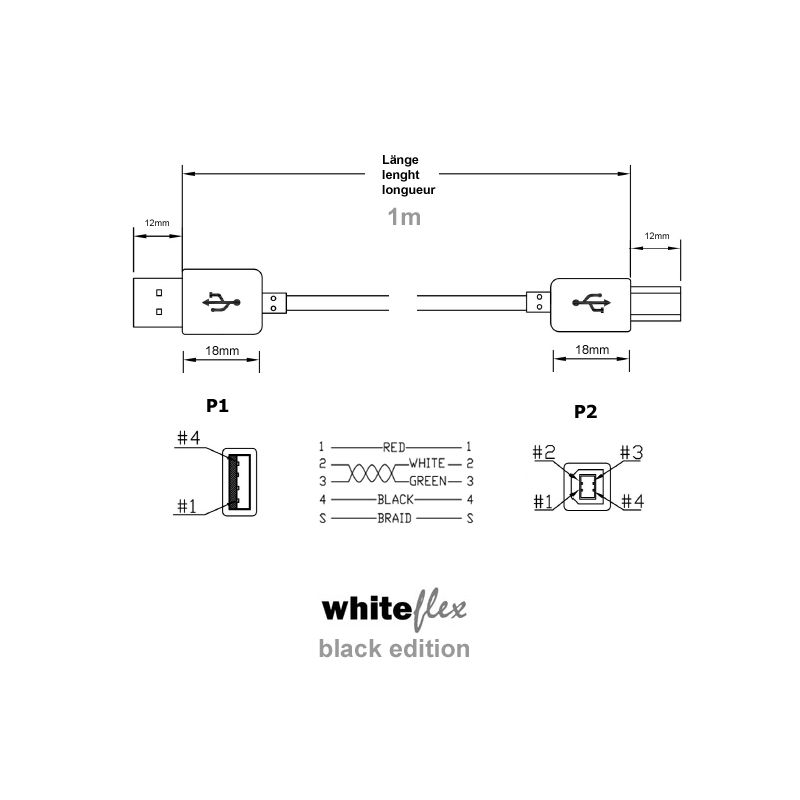 WHITEFLEX Black Edition USB 2.0 cable black + flexible 1m