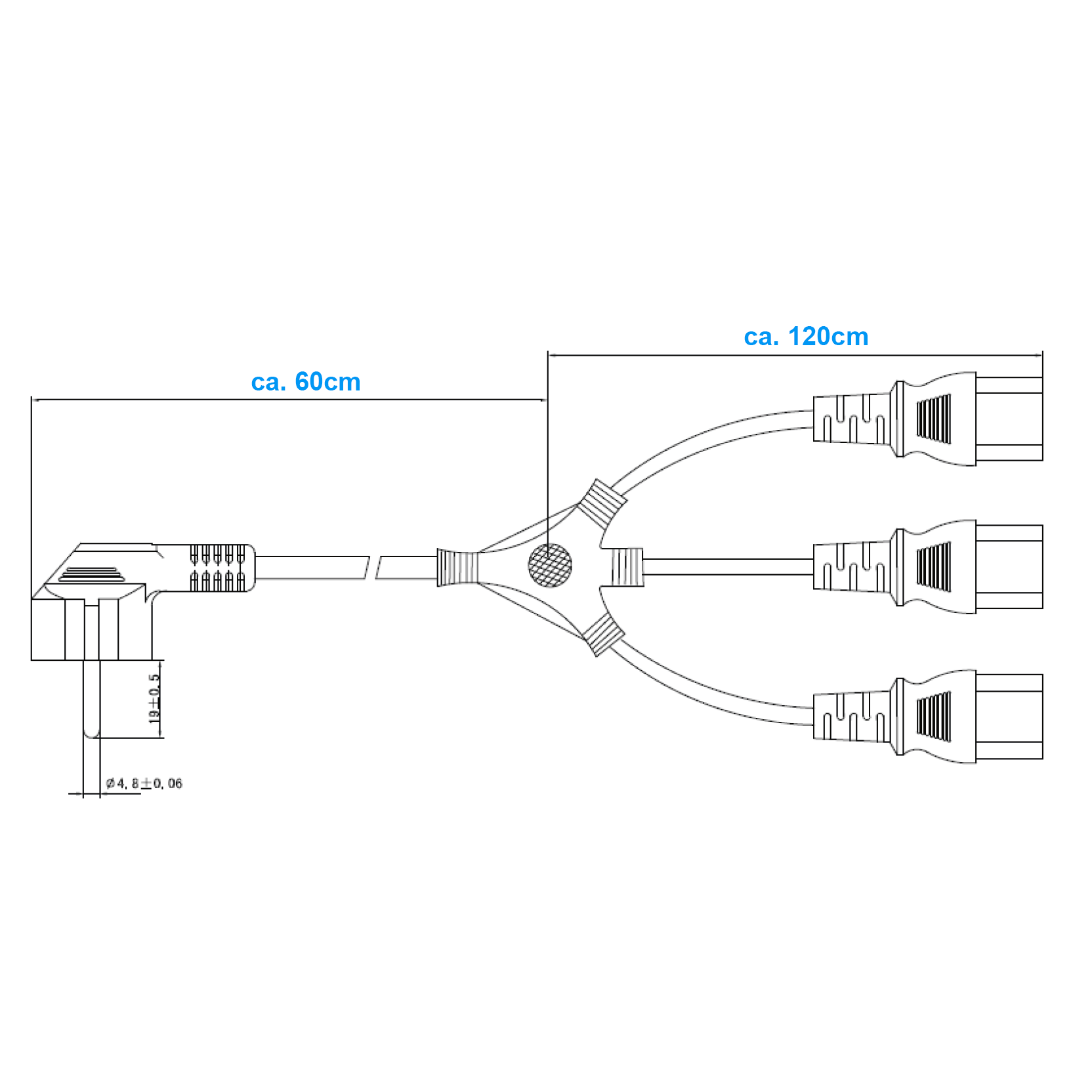 Y power cord for 3 devices, total length 180cm (60cm + 3x 120cm), for continental Europe