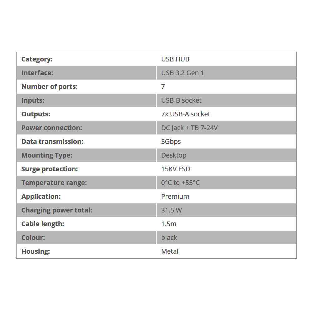 - USB 3.2 Gen 1 Metal HUB with 7 ports