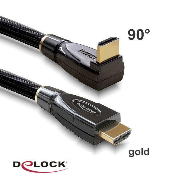 90° angled High Speed HDMI cable with Ethernet, premium quality + textile coating, 1m