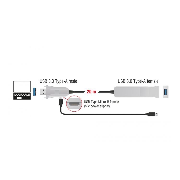 Active Optical Cable USB 3.0-A male to USB 3.0-A female 20 m