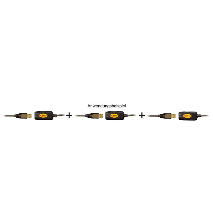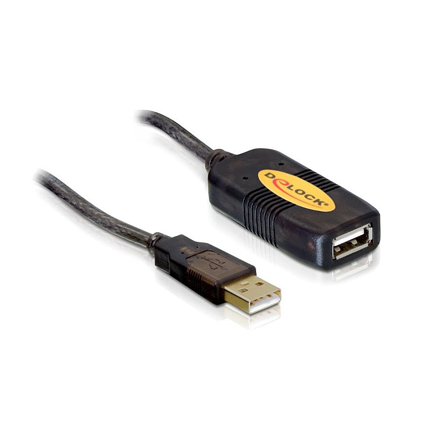 This USB 2.0 cable by Delock can be connected to an active USB port and enables an extension of 10 m. By connecting of an additional 10 m extension cable you can extend your USB port up to 20 m.