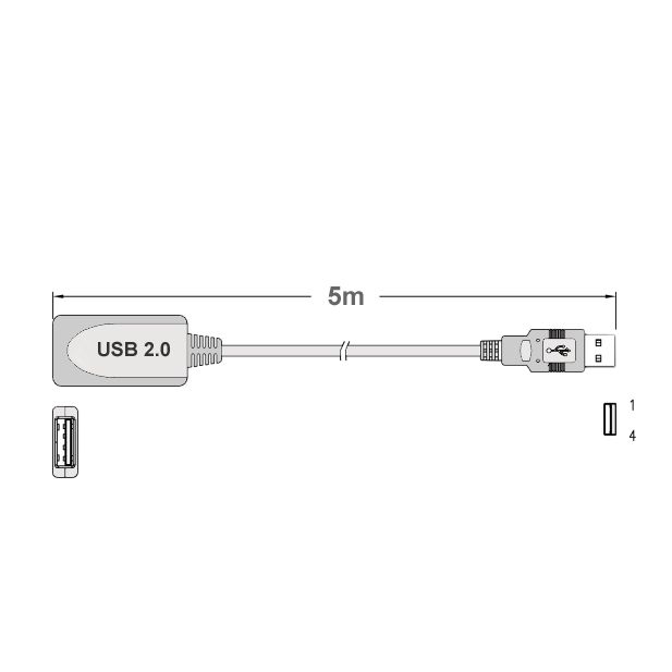 If you repeat this cable up to 25m, the voltage will gradually decline and if your device draws in excess of 2 watts, bus power will no longer function and an external power supply will be necessary.