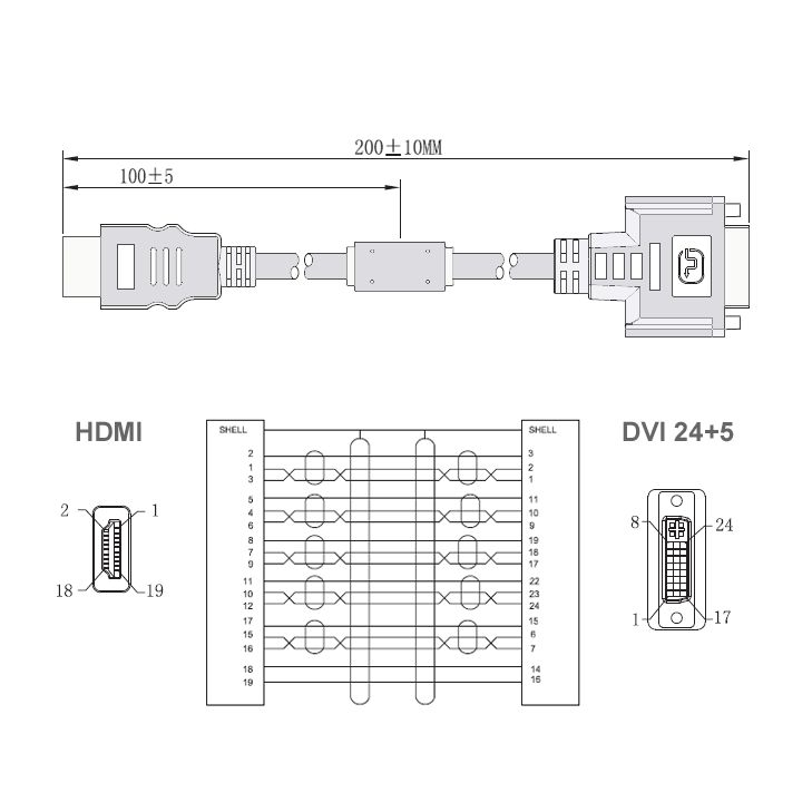 Adapter cable HDMI male to DVI-I 24+5 female, 20cm