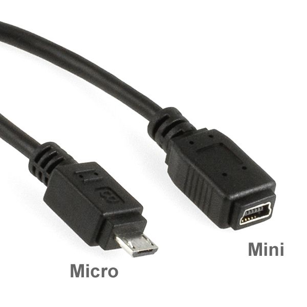 Adapter cable USB Mini B female to USB Micro B male, compatible USB 2.0, length about 20cm .
