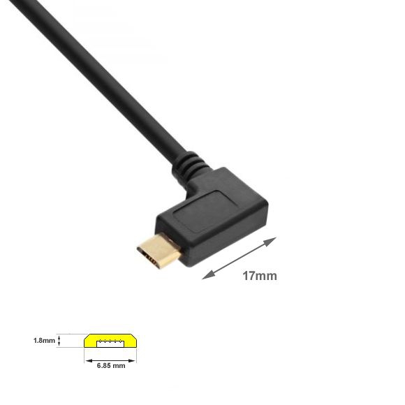 Angled MICRO USB cable: A male to Micro B 90° ANGLED RIGHT 3m