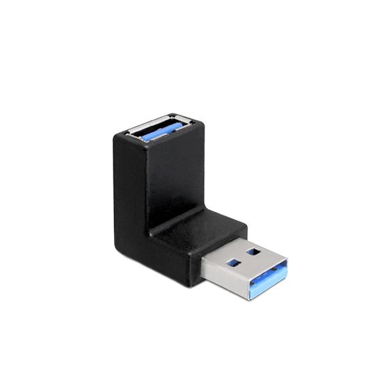 Angled USB 3.0 adapter, plug USB 3.0 A male to USB 3.0 A female, 90° ANGLED UP, black