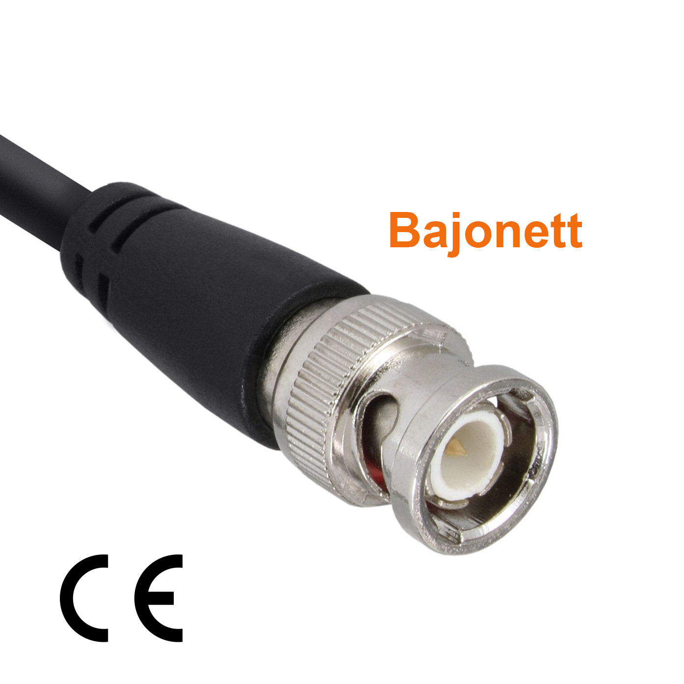 BNC video cable, 2m, 75 Ohm for video applications, RG59, bayonet nut connector, e.g. for observation cameras, monitoring cameras, police enforcement cameras, security cameras